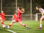 L'equip va saber competir en una primera part on l'equip local va tenir el domini del partit, amb gran part de la possessió de la pilota. Tot i això, Claudia López va sorprendre la portera del conjunt adrianenc, forçant-la a estirar el braç i enviar la pilota a còrner després d'un xut llunyà en una pilota refusada.